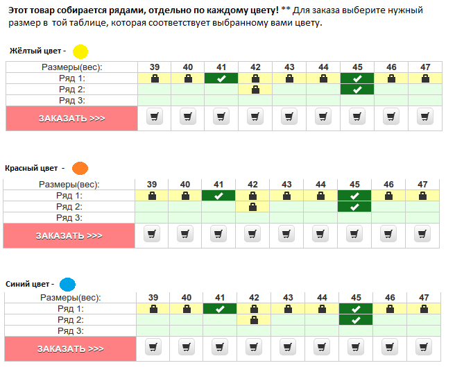 есть ряды 39,40,41,42,43,44,45 но так же этот ряд выкупается с удорожанием но от 4-х шт любых рядов вот такое тоже как сделать из-за новых галерей выкуп не собрался т.к. стоит только один параметр,что полный размерный ряд только